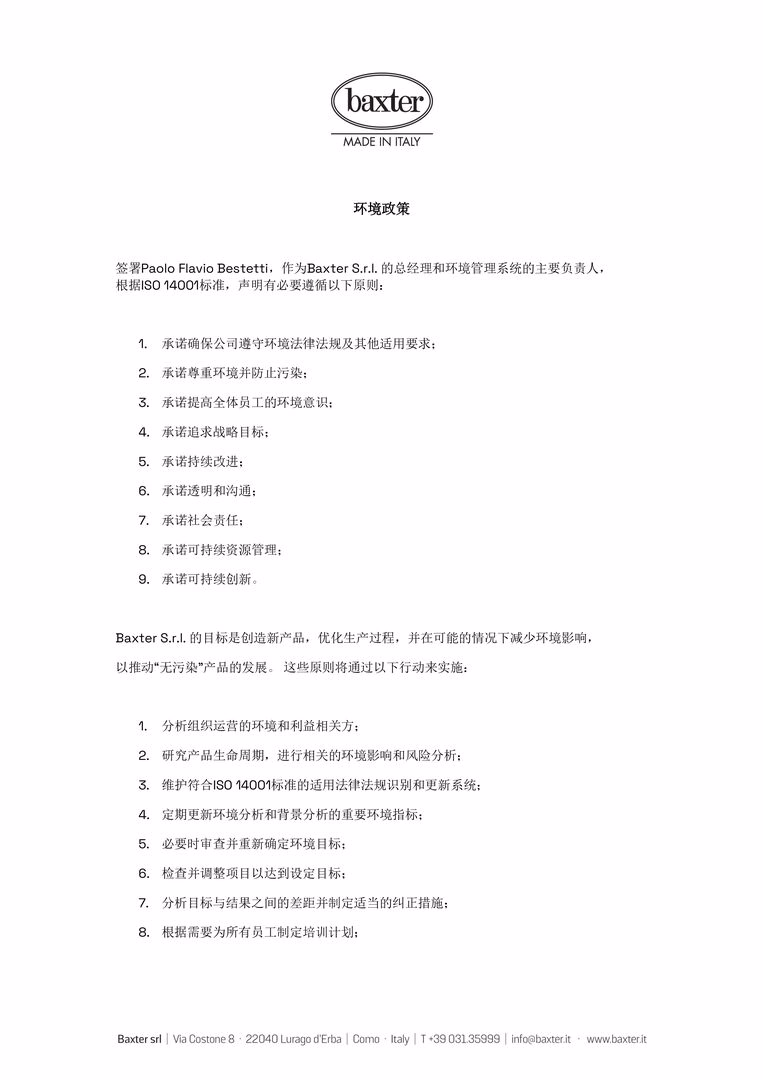 Il Sistema di Gestione Ambientale (SGA) della Baxter s.r.l. si basa sul fondamentale impegno della Direzione aziendale verso: