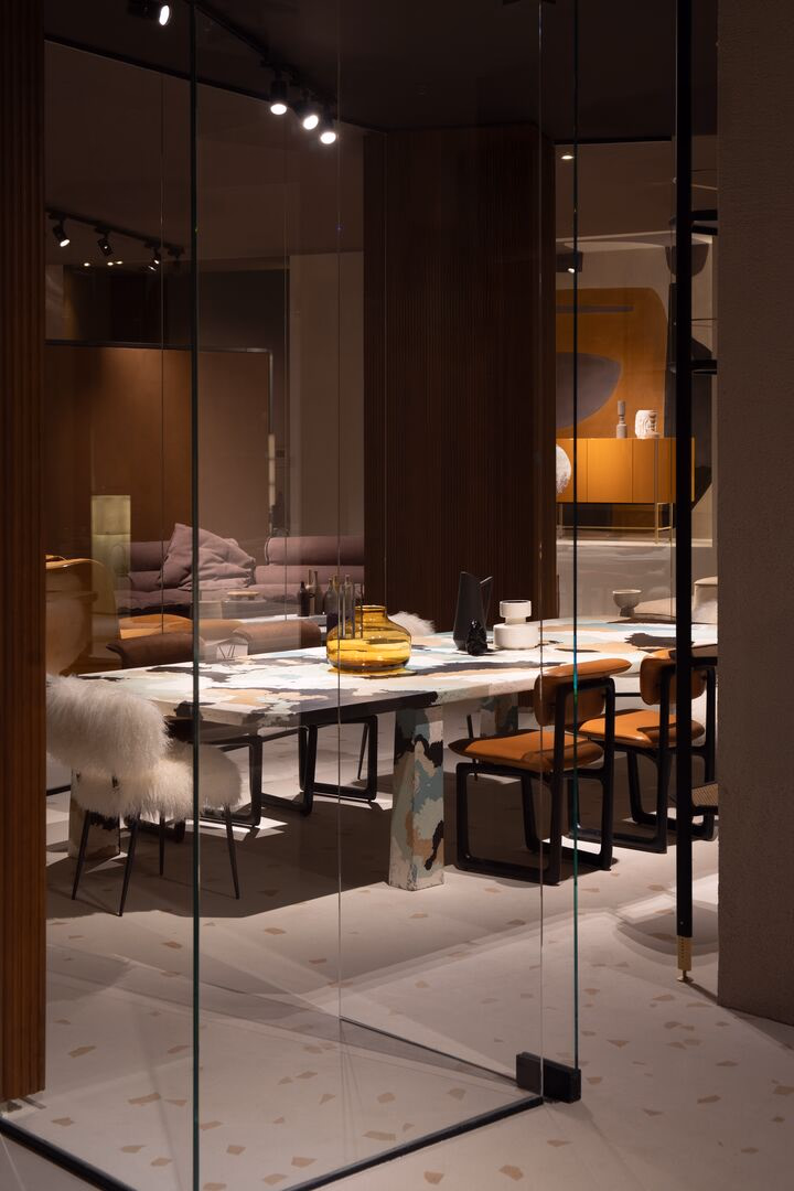 Ogni elemento del progetto – dal ritmo delle superfici al suono ovattato dei passi, dalla densità narrativa dell’aria al calore tattile dei materiali – è pensato per trasformare la presentazione della collezione in un’esperienza totale. In questo contesto evocativo, i designer Baxter condividono le ispirazioni che hanno guidato la nascita di ciascun prodotto, svelando visioni, riferimenti culturali, atmosfere e materiali che si intrecciano in un racconto corale.