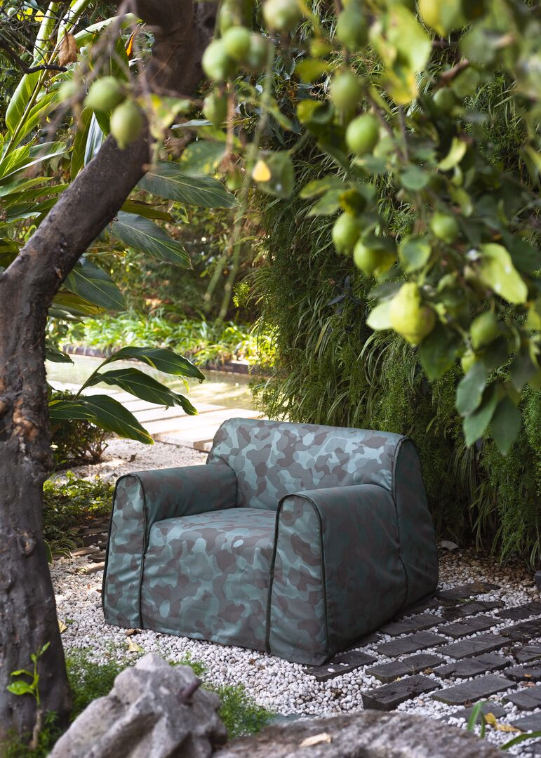 Dice Paola Navone che sia il pattern camouflage sia il mimetico Camo Vert rappresentano una prospettiva sul mondo: