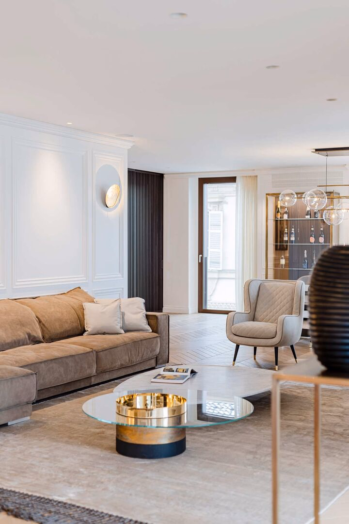 在巴黎马蒂尼翁大道由 César Pupat 设计的这座公寓中以了解 Baxter 的室内设计。